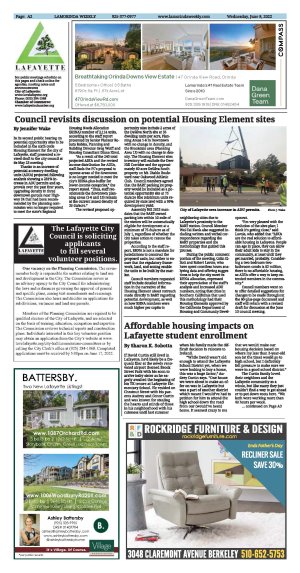 Whitmore reported that the Lafayette School District is down by some 54 kindergarteners for the upcoming academic year, but that the future looks bright for the district as a whole with 3,122 students already enrolled compared to the projected 3,033. The Lafayette School District worked with Davis Demographics to do an enrollment assessment and study. "Our last study was done seven years ago and the projections didn't seem to be playing out, so it was a good time to revisit," Whitmore says. "With the city's efforts to adopt a new housing element as part of their obligations, we wanted to better understand the impact new housing units might have on the district. The city has been anxiously awaiting the outcome of our study and we've shared it with them."