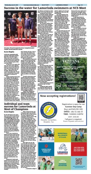 Mari Testa won the 100-meter hurdles, the 100-meter race and was part of the 4 x 100 relay with Kyrstin Wilson, Meagan Kennedy, and Sara Tabibian. Tabibian also won on the 300-meter hurdles and placed third in the 400 meters race, with all of them qualifying to go to the state tournament. "With our core of outstanding sprinters, the rest of the team has fed off the excitement and performances that they have brought," Woolridge said. "Sara last participated in the state tournament in her freshman year, so she really knew what this tournament was about and what it takes and has been a real core for our team."