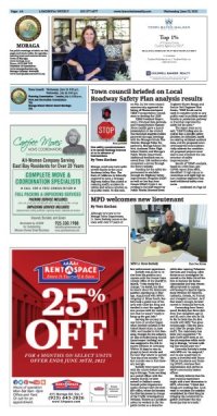 Page A 4 - A 5 Town council briefed on Local Roadway Safety Plan analysis resultsMPD welcomes new lieutenantMoraga Chamber's new executive director works to get businesses back on track
