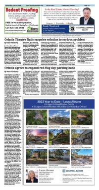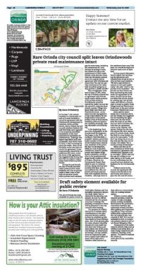 Page A 6 - A 7 Rare Orinda city council split leaves Orindawoods private road maintenance intactDraft safety element available for public reviewOrinda Theatre finds surprise solution to serious problemOrinda agrees to expand red-flag day parking bans