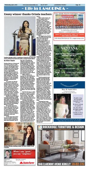 | Published July 6th, 2022 | Emmy winner thanks Orinda teachers | | By Diane Claytor |  | Estefany Mendez, KPIX 5, receiving an Emmy for the story she wrote, produced and directed about a young Fremont skater Photos provided | Estefany Mendez is living proof that dreams really can come true. As a little girl growing up in Mexico City, Mendez never imagined she could be producing the morning news broadcast at a major English-speaking television station in the sixth largest market in the nation (according to Nielsen DMA rankings). And then, the cherry on the top: winning an Emmy for a story she pitched, developed, produced and directed.