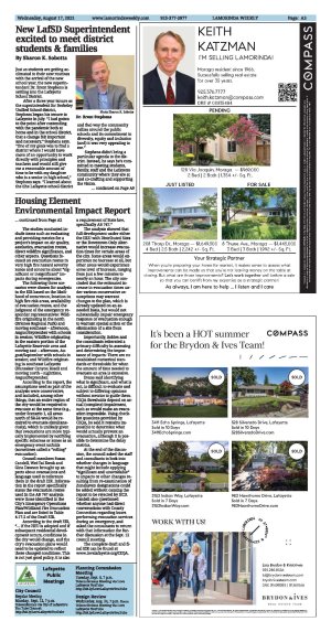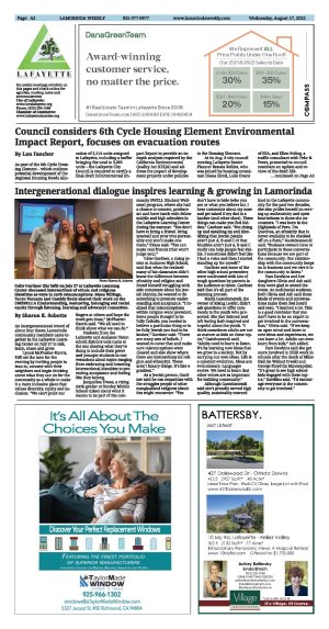 | Published August 17th, 2022 | Council considers 6th Cycle Housing Element Environmental Impact Report, focuses on evacuation routes | | By Lou Fancher | | | As part of the 6th Cycle Housing Element - which outlines potential development of the Regional Housing Needs Allocation of 2,114 units assigned to Lafayette, including a buffer bringing the total to 3,095 units - the Lafayette City Council is required to certify a final draft Environmental Impact Report to provide an in-depth analysis required by the California Environmental Quality Act (CEQA) and address the impact of development projects under policies in the Housing Element.
