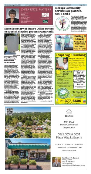 Save the date for Moraga's Community Service Day, scheduled to occur during the mornings and afternoons of Oct. 1 and 2 and organized by several Moraga community groups as a way for residents to help those in need within and outside the town of Moraga as well as to help local schools and beautify the community. More information to follow soon. Questions? Contact mmmccluer@aol.com.