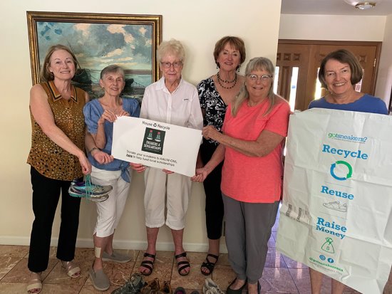 The American Association of University Women (AAUW), Orinda-Moraga-Lafayette branch is collecting sneakers in order to raise money for local?scholarships.?Pictured from left: Jill Eberhard, Mary Ann McLeod, Joan Foster, Laura Wittenberg, Linda Bochte and Jill Fernald. Photo Bonnie Fend