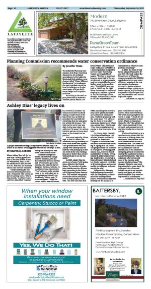 | Published September 14th, 2022 | Planning Commission recommends water conservation ordinance | | By Jennifer Wake | | | The Lafayette Planning Commission at its Sept. 6 meeting discussed a city-initiated amendment to the Lafayette Municipal Code adding a new chapter titled "Water Efficient Landscaping" to implement the state mandate requiring local jurisdictions to implement water efficient landscape design and irrigation practices.