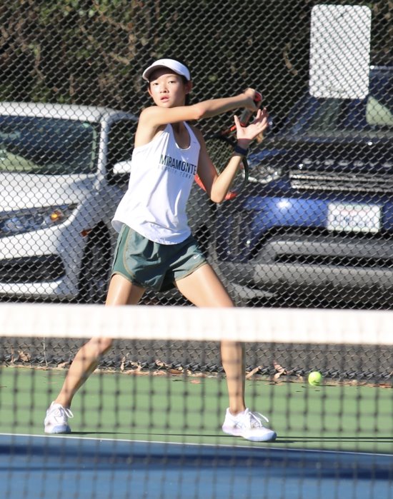 Miramonte has a great deal of depth with 20 girls on the team and great class balance with five seniors, five juniors, four sophomores and six freshmen. The singles players have been a strength of the team. "Our top six are very strong and seven through 20 are very close in ability which makes for very high-quality practices," Sorenson said. "I've never had so many freshmen on one team with two, Caitlin Chan and Maddie Silveira, our number two and four singles players."