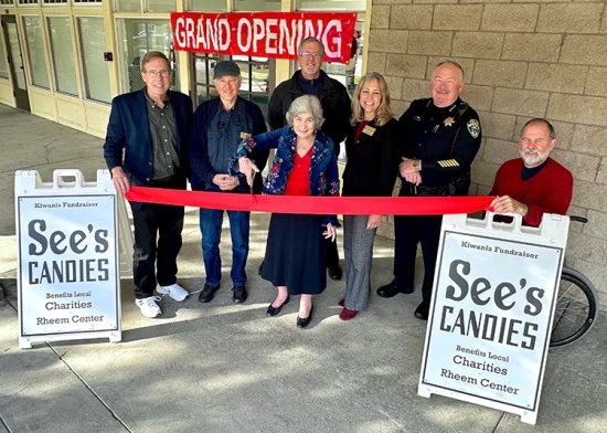 | | Moraga Mayor Steve Woehleke, Moraga Chamber of Commerce Board Member Larry Tessler, Kiwanis Club President Gloria Eive, Moraga Park Foundation President Clay Serrahn, County District 2 Field Representative Jill Ray, Moraga Police Chief Jon King, and Kiwanis Club Vice President Graig Crossley celebrated the store opening Nov. 18 at the Rheem Shopping Center. Photo Chris McGuffin | | | | | | The Kiwanis Club of Moraga Valley has been selling See's candy during the holiday season every year since 2010, and their fundraiser store opened again on Nov. 18 in the Rheem Shopping Center near CVS.
