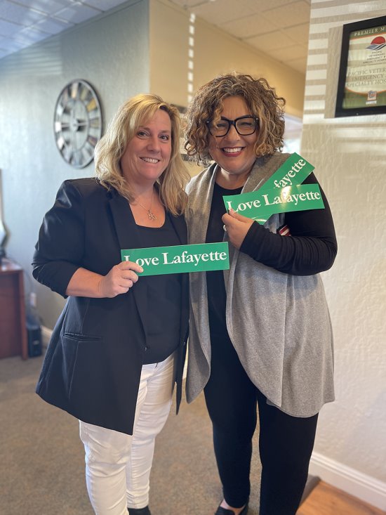 | | Lafayette Chamber Executive Director Sara Regan (left) with Chamber member, Rolla Ghaben, co-owner of Batch and Brine. Photo Holly Sonne | | | | | | Sara Regan knew she had big shoes to fill when she took over as executive director of the Lafayette Chamber of Commerce.? After all, she was replacing the much beloved, much respected Jay Lifson, who had been at the helm of the organization for 17 years. But after spending time with Regan, who is down-to-earth, warm, friendly, exuberant and passionate about Lafayette and its growing business community, one has little doubt that she will be every bit as successful - and appreciated - as her predecessor.