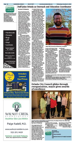 | Published December 21st, 2022 | Duff joins Orinda as Outreach and Education Coordinator | | By Sora O'Doherty |  | James Duff, Outreach and Education Coordinator Photo Sora O'Doherty | What brought James Duff, Orinda's new Outreach and Education Coordinator, from Texas to California? Well, actually, it was his wife. They had been living in Texas, where James was working with the Austin Fire Department, but his wife was seeking a change and was recruited by the African Wildlife Foundation to run western fundraising, working from home in the Bay Area. They arrived in Oakland mid-August and thought they would quickly purchase a home, but soon realized that the Bay Area is very diverse and it would be worthwhile to get to know it better. They are currently living in Moraga.