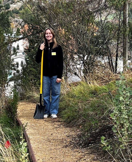 Shapoorian selected as her project the creation of a new 30-foot walkway in area of the garden at Springhill Elementary School. Her ultimate goal was to stop the harmful erosion while creating a new learning environment for the young students. She accomplished this by creating a safe walkway with native plants for the students to study. The project area was not frequently used by students especially during rainy weather as it quickly became flooded and then eroded. Now the students can use the walkway year-round and, during the nice weather sit on it as they study the native habitat around them.