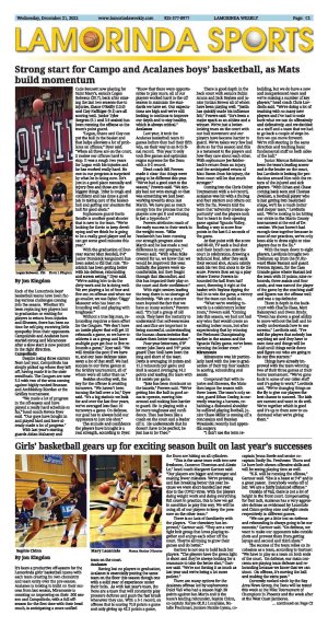 | Published December 21st, 2022 | Strong start for Campo and Acalanes boys' basketball, as Mats build momentum | | By Jon Kingdon |  | Logan Robeson , #24 Photo J. Kingdon | Each of the Lamorinda boys' basketball teams have been facing various challenges coming into the season. Whether it's been replacing key players lost to graduation or waiting for players to return from injuries and illnesses, there has been no time for self-pity, receiving little sympathy from their opponents. Campolindo and Acalanes have started strong and Miramonte after a slow start is now pointed in the right direction.