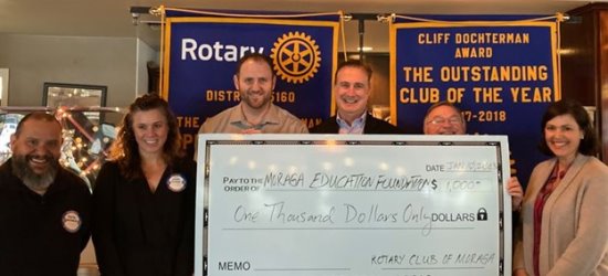 "Moraga Rotary is a service organization that believes in supporting our local schools via Moraga Education Foundation," stated Moraga Rotary Co-President Roger Gregory. "Our membership along with those that support our various fundraisers like Dinner with Rotary enable us to provide this financial donation," added Moraga Rotary Co-President Igor Kipnis.