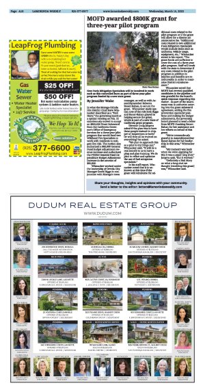 In what the Moraga-Orinda Fire District Chief Dave Winnacker described as a "Hail Mary," the governing board at a special meeting on Feb. 22 unanimously moved to accept an $800,000 Grant Subaward from the California Governor's Office of Emergency Services for a three-year pilot program that would fund two Wildland Fire Specialists to work with residents to mitigate fire risk. The motion also authorized a $60,000 General Fund budget adjustment revenue increase and authorized the FY2023 General Fund Expenditure Budget Adjustment Increase in the amount of $60,000.