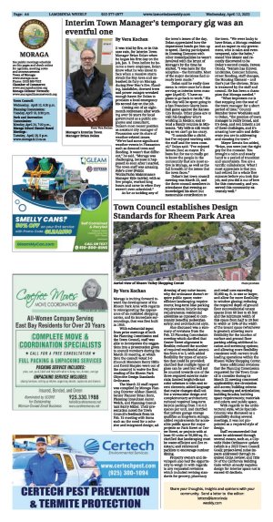 | Published April 12th, 2023 | Interim Town Manager's temporary gig was an eventful one | | By Vera Kochan |  | Moraga's Interim Town Manager Brian Dolan Photo Vera Kochan | It was trial by fire, or in this case rain, for Interim Town Manager Brian Dolan when he began his first day on the job, Jan. 3. Even before he became a town employee, Dolan knew what he was about to face when a massive storm struck the Bay Area and unleashed its fury on Moraga during New Year's Eve. Flooding, landslides, downed trees and power outages wreaked enough havoc for Dolan to proclaim a local emergency his second day on the job.