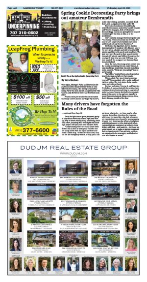 | Published April 12th, 2023 | Many drivers have forgotten the Rules of the Road | | By Vera Kochan |  | Moraga Police driving on Rheem Boulevard. Photo Lamo archive | This reporter was involved in a rather disconcerting situation along Moraga Road near Ascot Drive in Moraga at around 4 p.m. March 23. There were approximately 10 or more vehicles traveling south along with mine. All were traveling at the posted speed limit of 35 mph.