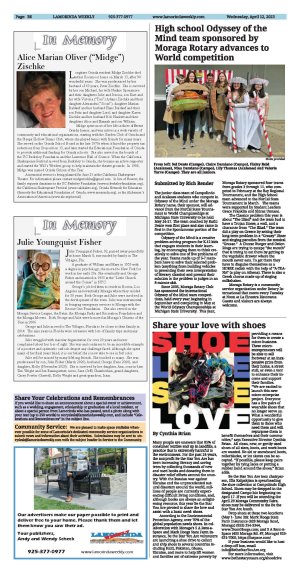 Be the Star You Are teen chairperson, Ella Kalpakjian is spearheading the shoe collection at Campolindo High School. Shoes may be dropped in the designated Campo bin beginning on April 17. If you will be attending the April 29 Moraga Community Faire, shoes may be delivered to the Be the Star You Are booth.