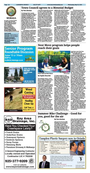 The Challenge begins June 1 and runs through Aug. 31. There are three specific dates in Moraga when additional prizes for pedaling cyclists are offered. On June 14, between 11 a.m. and 1 p.m., bike to the Moraga Commons Park for a free ice cream gift card. On June 28, between 2 and 4 p.m., at the Hacienda de Las Flores, earn a free Starbucks gift card, and on July 12, between 2 and 4 p.m., at the Moraga Library earn another free Starbucks gift card. Just look for the "511CC" table.