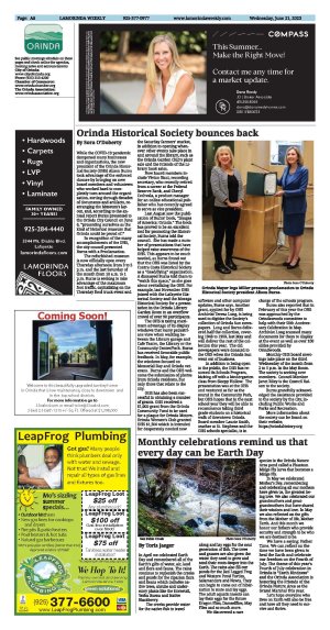 We have a saying: Father Time. We can reflect on the time we have been given to heal the Earth and celebrate our freedom on the Fourth of July. The theme of this year's Fourth of July celebration in Orinda is "Earth Kindness" and the Orinda Association is honoring the Friends of the Orinda Nature Area as the Grand Marshal this year.