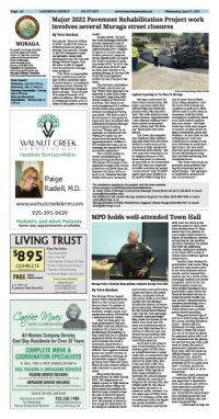 Page A 4 - A 5 Major 2022 Pavement Rehabilitation Project work involves several Moraga street closuresMPD holds well-attended Town HallCommunity offers additional opinions on Housing Element via two recent surveysSMC's River of Words 2023, a youth art and poetry competition, sparked dramatic results