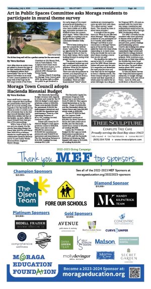 To take the Mural Survey visit: https://bit.ly/moragamuralsurvey, or Google: Moraga Mural Survey, click onto About Town -- June 16, 2023, and scroll down to Mural Survey. | | | | | | | | | | | | | |
