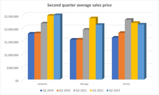 The second quarter of 2023 remained strong on the residential side of Lamorinda real estate. The total number of sales was down everywhere and the average price was steady in Lafayette but lower in Moraga and Orinda. The closings that occurred were those that mostly went under contract from mid-February to late May in a period of relatively higher interest rates than a year ago.