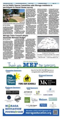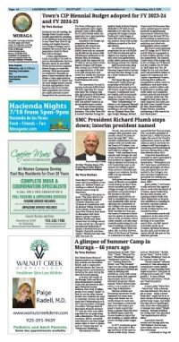 Page A 4 - A 5 Art in Public Spaces Committee asks Moraga residents to participate in mural theme surveySMC President Richard Plumb steps down; interim president namedMoraga Town Council adopts Hacienda Biennial BudgetMoraga Town Council adopts Hacienda Biennial BudgetA glimpse of Summer Camp in Moraga - 46 years ago