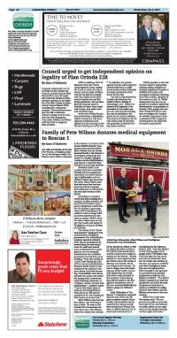 Page A 6 - A 7 Council urged to get independent opinion on legality of Plan Orinda EIRFamily of Pete Wilson donates medical equipment to Rescue 1
