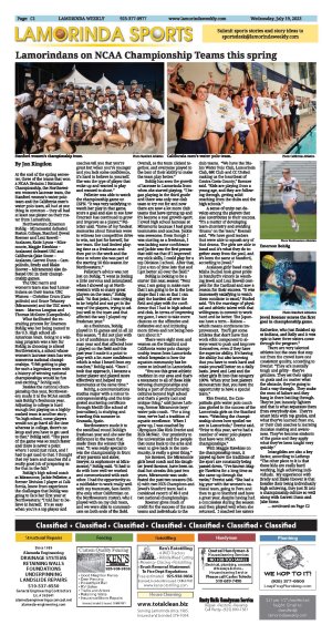Northwestern made it to the semifinal round Bohlig's freshman year and she saw the difference in the team that made them the winner this year. "It was really special to win the championship in front of my parents and sister, Sawyer, (a sophomore at Miramonte)," Bohlig said. "It had to do with how well we worked and communicated with each other. I had the opportunity as a midfielder to work really well with my teammate, Sam Smith (the only other Californian on the Northwestern roster), who I played with on my club team, and we were able to communicate on both ends of the field. Overall, as the team clicked together, and everyone played to the best of their ability to make the team play better."