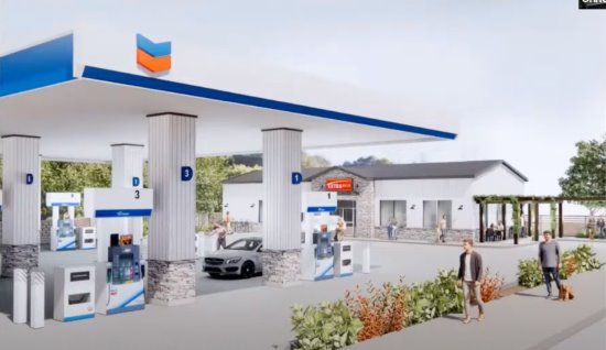 | Published July 19th, 2023 | Orinda Planning Commission approves Chevron project with creek access | | By Sora O'Doherty |  | Rendering courtesy City of Orinda | The Orinda Planning Commission on Wednesday, July 12 approved a major development for downtown Orinda. In the works for some time, the renovation of the Chevron gas station on the corner of Orinda Way and Santa Maria Way, will see empty service bays converted to an Extra Mile convenience store, the addition of an electric vehicle charging station, and a deck overlooking San Pablo Creek, with creek access along the side of the station.
