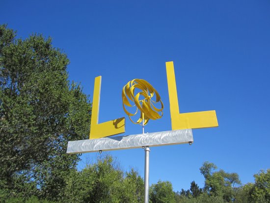 Added Brodwin, "As for 'LOL,' I followed George Rickey's use of bearings embedded into the metal, in this case aluminum, to allow the wind to move it. I tend to see things from the humorous side, so I thought a kinetic sculpture spelling `Laugh Out Loud' would be clever and went about creating this."