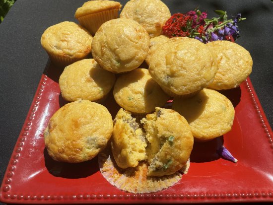 | | Sausage, Chive and Cheddar Corn Muffins Photos Susie Iventosch | | | | | | I love corn almost any way imaginable - grilled on the cob, polenta, cornbread, cream of corn, corn chowder, corn tortillas, street corn, and especially corn muffins. We make this recipe with turkey breakfast sausage, chives (or green onion) and sharp white cheddar. They are hearty, moist and so delicious. And, they're perfect for any meal of the day, too!