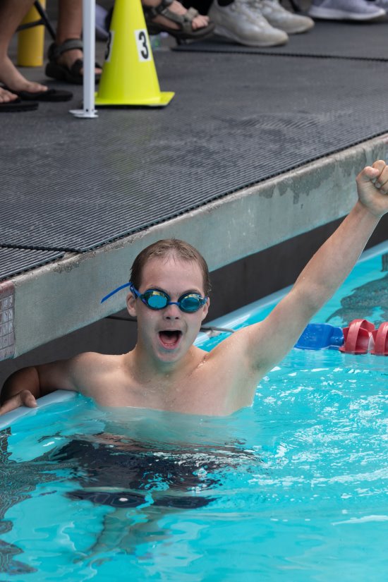 | | Simon Keenan, celebrates after his race. | | | | | | A green wave of East Bay Sea Serpents dove into the Summer Games and swam away as champions. East Bay Sea Serpents, the local Special Olympics swim team for swimmers with disabilities, is a 22-year-old program supported by head coach Brian Wentzel and a collection of local volunteers.?