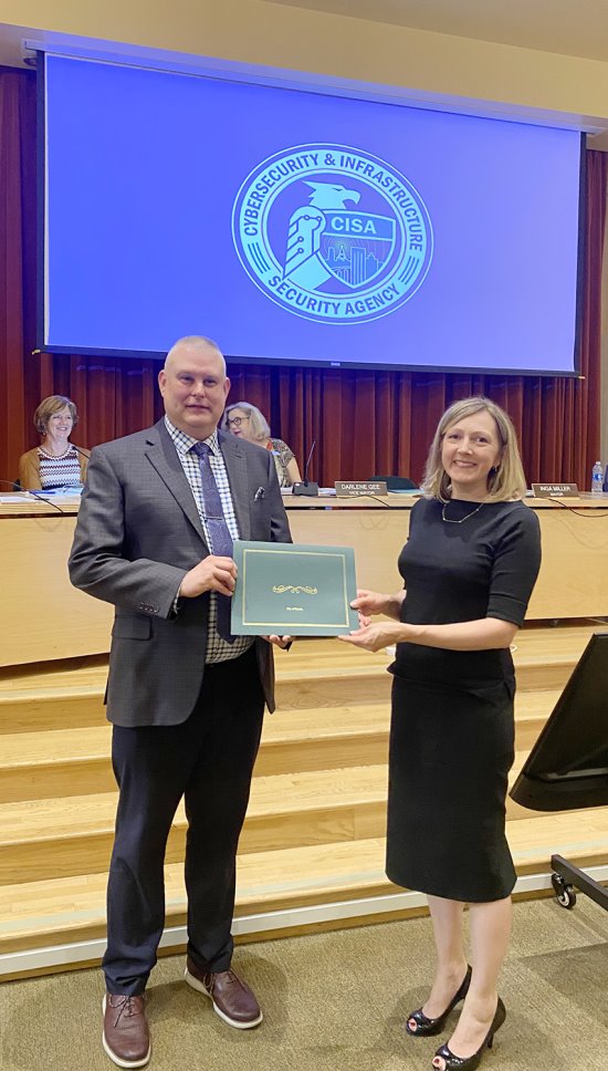 | Published August 30th, 2023 | Council recognizes cybersecurity expert for work with local jurisdictions | | By Alison Burns |  | Orinda Mayor Inga Miller presents Don Hester, from the Homeland Security's Cybersecurity Infrastructure Security Agency (CISA), with a Proclamation of the City of Orinda in Support of Cybersecurity Awareness Month 2023. Photo courtesy City of Orinda | If Don Hester's intention was to terrify his audience, then he probably succeeded. But his recent presentation also served as a timely warning in an ever-evolving cybersecurity landscape where cyberattacks have become increasingly common and sophisticated.