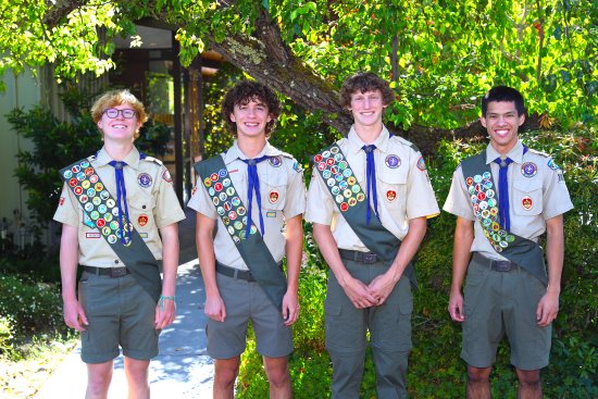 | | Photo provided | | | | | | Troop 243 of Lafayette came together for an Eagle Court of Honor on Aug. 12 at the Lafayette Christian Church to honor and celebrate four scouts: Cole Mason, Miguel Strittmatter, Tyler Gough and Brady Quinn, each of whom were recognized for earning BSA scouting's highest rank, Eagle Scout. To achieve the prestigious rank of Eagle Scout, these young men completed a rigorous set of requirements, including earning at least 21 merit badges, holding various leadership positions within their troop, and executing a significant community service project to benefit the public or a nonprofit organization.