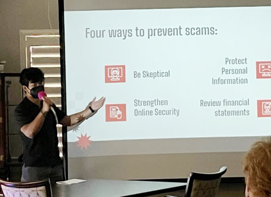 To continue spreading the word and raising awareness, Sugiyama wrote and submitted an opinion piece to the San Francisco Chronicle, which ran on the newspaper's website earlier this month. He is also reaching out to the local community, speaking at senior residences and organizations with the goal of educating them about the scams that are out there. He recently made his first presentation to residents at Moraga Royale.