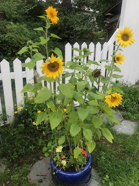 | Save the seeds of sunflowers to plant and to feed the birds. Photos Cynthia Brian |