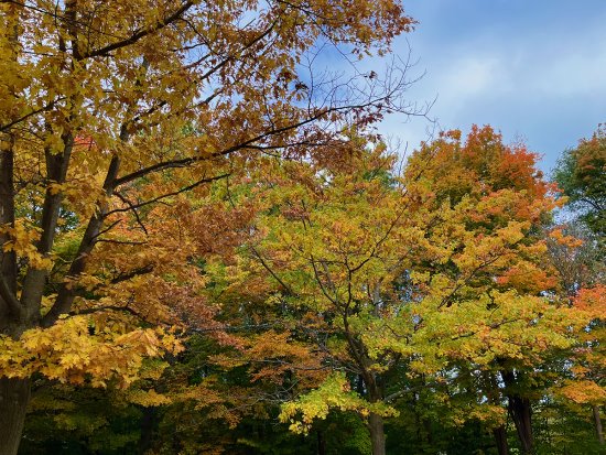 | Sugar maples in several colors line this path. Photos Cynthia Brian |