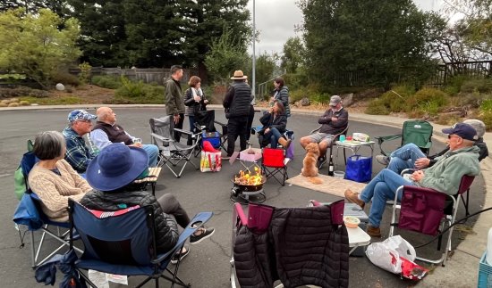 | | Published November 8th, 2023 | Moraga cul de sac cocktail gatherings continue post pandemic | | | By Diane Claytor |  | | Neighbors gather for another Friday evening "Cul de Sac Cocktails" gathering in Moraga. Photo Diane Claytor | It started out as a group of neighbors in Moraga's Rheem Valley Manor getting together outside on a Friday evening in mid-2020 when California was literally shut down due to COVID-19. They were attempting to combat the isolation, loneliness and boredom being felt by so many. They brought their own chairs, placing them in a circle, six feet away from one another. They brought their own refreshments. Some wore masks, no one touched anyone or anything. While most knew each other, at least to wave when driving down the street, the majority were acquaintances at best.