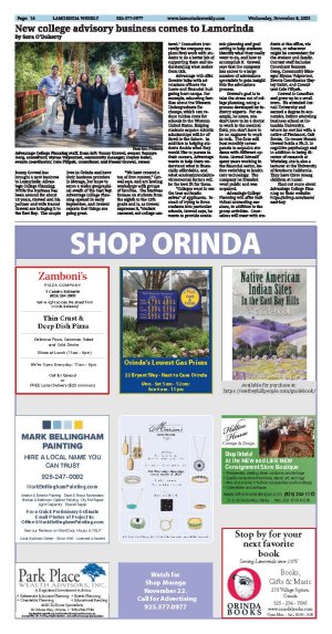 | Published November 8th, 2023 | New college advisory business comes to Lamorinda | | By Sora O'Doherty |  | Advantage College Planning staff, from left: Sunny Grewal, owner; Saumya Garg, consultant; Myrna Volpentest, community manager; Hayley Gabri, events coordinator; Cole Filipek, consultant; and Naomi Grewal, owner Photo Sora O'Doherty | Sunny Grewal has brought a new business to Lamorinda: Advantage College Planning. While the business has been around for about 18 years, Grewal and his partner and wife Naomi Grewal are bringing it to the East Bay. The couple lives in Orinda and have their business premises in Moraga, but hope to serve a wider geographical swath of the East Bay. Advantage College Planning opened in early September, and Grewal reports that things are going great.