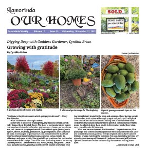 MARK YOUR CALENDAR: Be the Star You Are!r charity volunteers will once again collaborate for Santa Day at 5A, Dec. 2 from 11 a.m. to 2 p.m., 5 A Rent-a-Space, 455 Moraga Rd. #F, Moraga. FREE crafts, holiday treats, plus a photo with Santa and his elf! Thanks to Mark Hoogs State Farm Insurance, www.TeamHoogs.com, for sponsoring BTSYA. More info: www.bethestaryouare.org/copy-of-events |  | A whimsical gardenscape for Thanksgiving. Photo Cynthia Brian |  | Gigantic green guavas will ripen on the counter. Photo Cynthia Brian |  | The colorful fruit on the arching branches of a graceful female pistache tree. Photo Cynthia Brian |  | Cynthia Brian advocates to continue to deadhead roses through winter. For more gardening advice for all seasons, check out Growing with the Goddess Gardener at https://www.CynthiaBrian.com/books. Raised in the vineyards of Napa County, Cynthia Brian is a New York Times best-selling author, actor, radio personality, speaker, media and writing coach as well as the Founder and Executive Director of Be the Star You Are! 501 c3. Tune into Cynthia's StarStyle Radio Broadcast at www.StarStyleRadio.com. Her newest children's picture book, Family Forever, from the series, Stella Bella's Barnyard Adventures is available now at https://www.CynthiaBrian.com/online-store. Hire Cynthia for writing projects, garden consults, and inspirational lectures. Cynthia@GoddessGardener.com https://www.CynthiaBrian.com | | | | | |