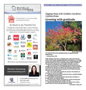 | Published November 22nd, 2023 | Digging Deep with Goddess Gardener, Cynthia Brian | Growing with gratitude | By Cynthia Brian |  | A glorious garden of mums and maples. Photo Cynthia Brian | "Gratitude is the fairest blossom which springs from the soul." ~ Henry Ward Beecher