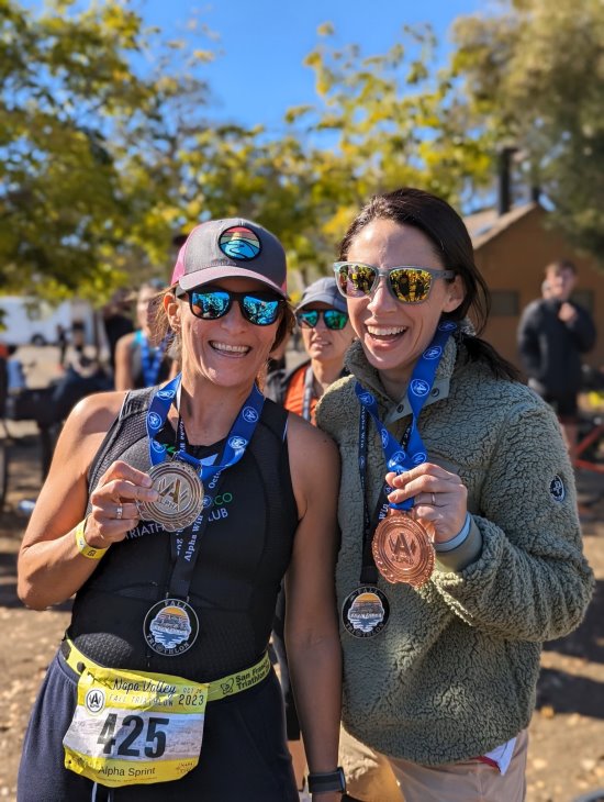 Moraga moms Emily Karlberg (Lieberman) and Erin Beal both made the podium at the 2023 Alpha Win Napa Valley Fall Triathlon held at the end of October in Napa.