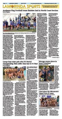 Acalanes Flag Football team finishes 2nd in North Coast SectionCampo boys water polo wins D-2 NorCal Championship; Mats suffer close loss in D-1 finalMoraga moms place in local TriathlonFirst place for Miramonte Water Polo JV teamMiramonte wins NCS championship with victories over Acalanes and CampolindoExemplary day for Lamorinda cross country teamsBig Game Lunch celebrates 51 years