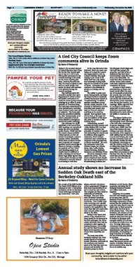 Page 6 - 7 A tied City Council keeps Zoom comments alive in OrindaAnnual study shows no increase in Sudden Oak Death east of the Berkeley-Oakland hillsOrinda recognizes Transgender Day of Remembrance