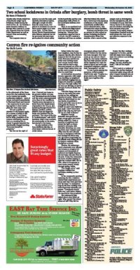Two school lockdowns in Orinda after burglary, bomb threat in same weekCanyon fire re-ignites community actionLafayette Police BlotterMoraga Police BlotterDecorated and decadent brownies make a festive dessertPeter Pan Foundation production of 'Beauty and the Beast' opens Dec. 2