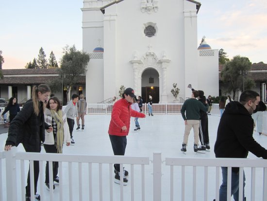 But, the "piece de resistance" (say it with a French accent) at Winter Fest was the ice skating rink set up directly in front of the Chapel. Ice skates were provided, and nearly half of the students who laced them on couldn't skate, but gave it the old college try. Many hugged the perimeter fence as friends who could skate acted as coaches with encouraging words and steadying hands to catch their buddies should they lose balance. A few couldn't slow down and crashed into the barriers, and there were those whose bottoms hit the ice after failed attempts to stay upright.