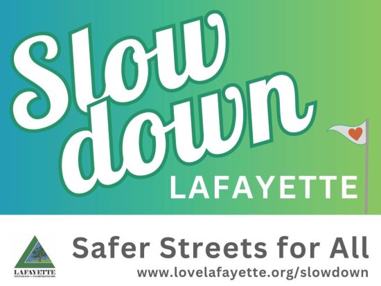 Comly and the rest of the traffic safety team will keep the focus in coming months on high-risk areas where changes occur and addressing them promptly, including reports from residents about "hot spots" and concerns about specific areas. Approximately 100 signs urging drivers to "Slow Down Lafayette" have been placed on lawns by parent-teacher association members, HOA and neighborhood groups, school principals and others, with another 50 signs available for display.