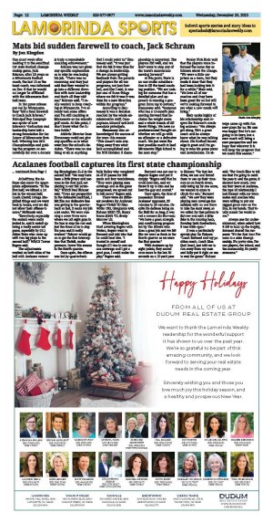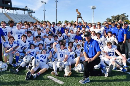 | Published December 20th, 2023 | Acalanes football captures its first state championship | | By Jon Kingdon |  | Acalanes football state champions Photo Acalanes Boosters | On May 15, the Acalanes football team began preparation for the 2023 season; 208 days later, the Dons were christened state champions for the first time with a 35-23 victory over Birmingham (Lake Balboa) High School in front of a number of parents, students, friends, alumni in the area and even some former players of head coach Floyd Burnsed.