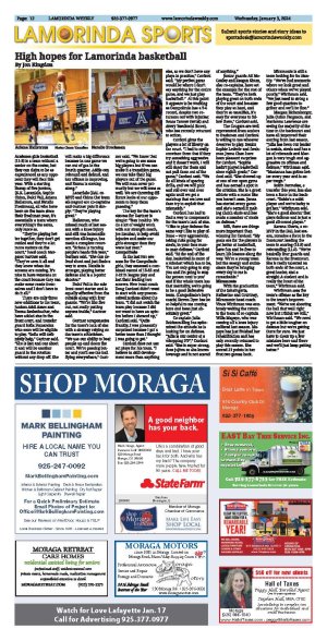 | Published January 3rd, 2024 | High hopes for Lamorinda basketball | | By Jon Kingdon |  | Ariana Hallstrom Photos Cimon Yiannikos | Acalanes girls basketball (11-3) is a team without a senior on the roster, but they can claim to be as experienced as any opponent they will face this year. With a starting lineup of five juniors, (K.K. Lacanlale, Sophie Chinn, Dulci Vail, Ariana Hallstrom, and Natalie Frechman), all who have been on the team since their freshman year, it's essentially a team where everything's the same, only more so.