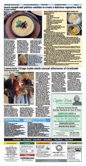 | Published January 3rd, 2024 | Lamorinda Village holds ninth annual Afternoon of Gratitude | | Submitted by Jim Scala |  | Don Jenkins Community Service Award recipient Ruth McCahan (center) Photo provided | Lamorinda Village, a Lafayette, community-based organization dedicated to supporting older adults and fostering a strong sense of connection, hosted its 9th annual Afternoon of Gratitude event on Dec. 8, in celebration of its members, dedicated volunteers, and outstanding community supporters. The event, held at the Jennifer Russell Building in the Lafayette Community Center, brought together more than 150 attendees, including the distinguished presence of six incoming, current, and former mayors representing all three towns. Attendees enjoyed wine and appetizers from Town Bakery and were treated to a captivating performance by the Stay at Tone Moms.